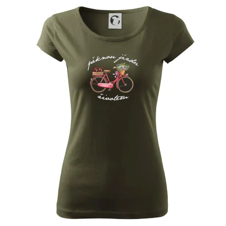 Narozeninové tričko pro babičku nebo tričko pro maminku, která slaví 55 let, s motem "pěknou jízdu životem". Stylové jízdní kolo na triku jako dárek na 55 narozeniny pro ženu. Triko pro babičku nebo triko pro maminku, která slaví jubileum 55 let.