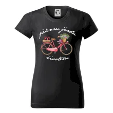 Narozeninové tričko pro babičku, která slaví 70 let, s motem "pěknou jízdu životem". Stylové jízdní kolo na triku jako dárek na 70 narozeniny pro ženu. Triko pro babičku, která slaví jubileum 70 let.