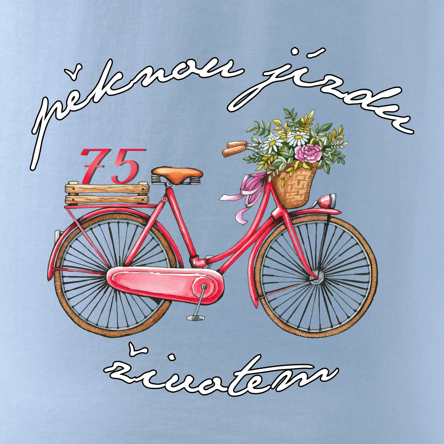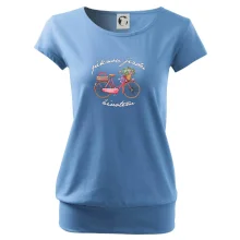 Narozeninové tričko pro babičku, která slaví 75 let, s motem "pěknou jízdu životem". Stylové jízdní kolo na triku jako dárek na 75 narozeniny pro ženu. Triko pro babičku, která slaví jubileum 75 let.