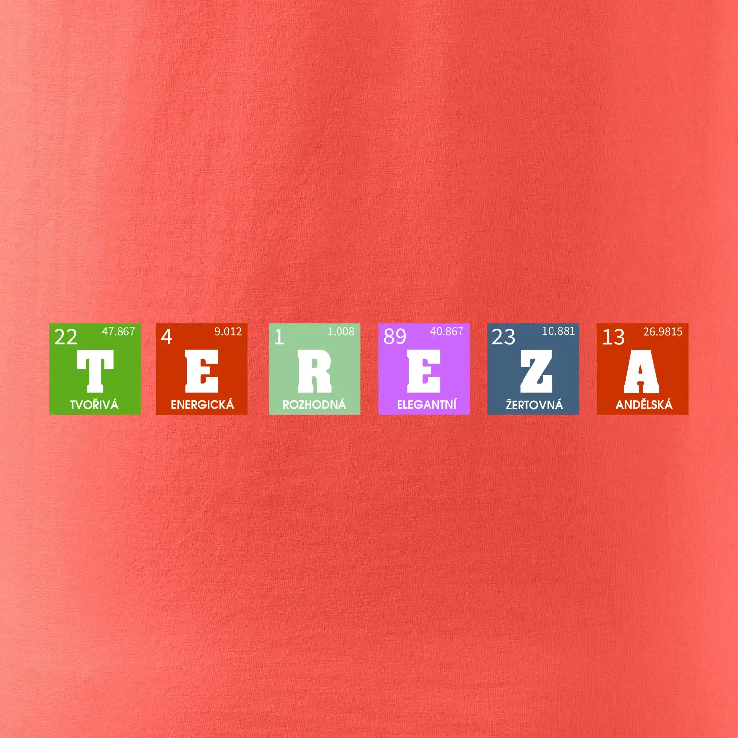Nechte si vyrobit originální tričko s periodickou tabulkou a vaším jménem, přezdívkou, prostě jakýmkoliv nápisem, který vyjádří vlastnosti obdarovaného.