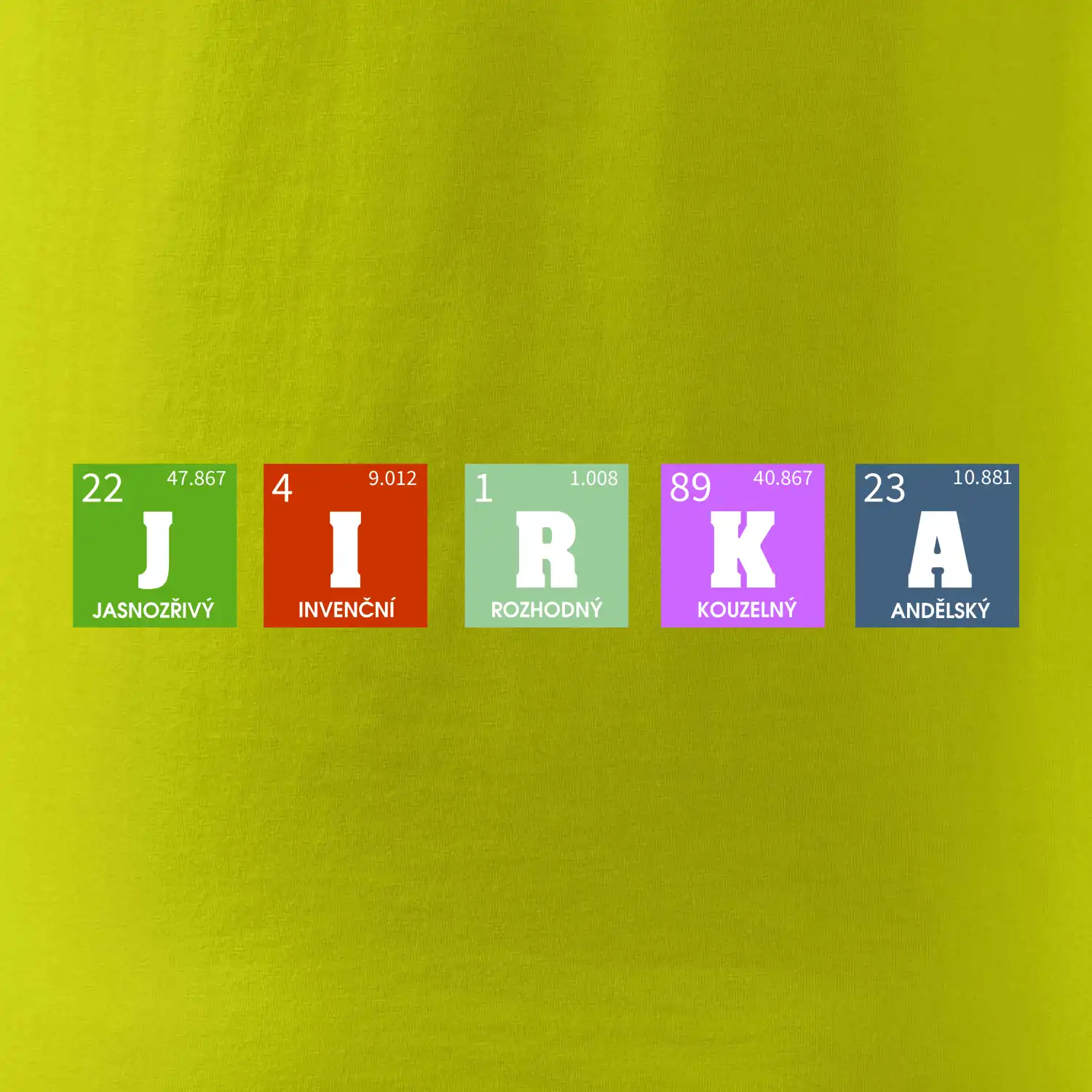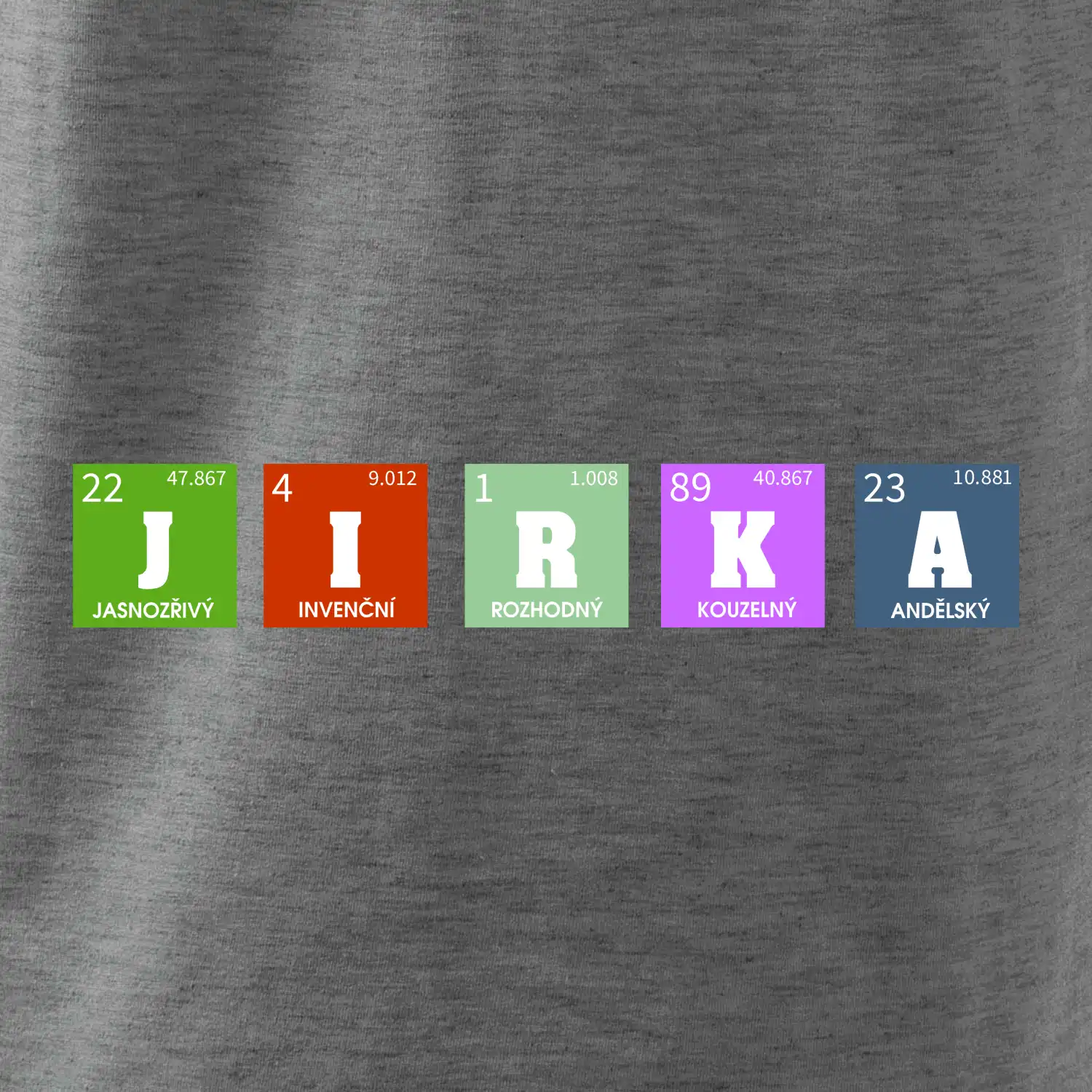 Nechte si vyrobit originální tričko s periodickou tabulkou a vaším jménem, přezdívkou, prostě jakýmkoliv nápisem, který vyjádří vlastnosti obdarovaného.