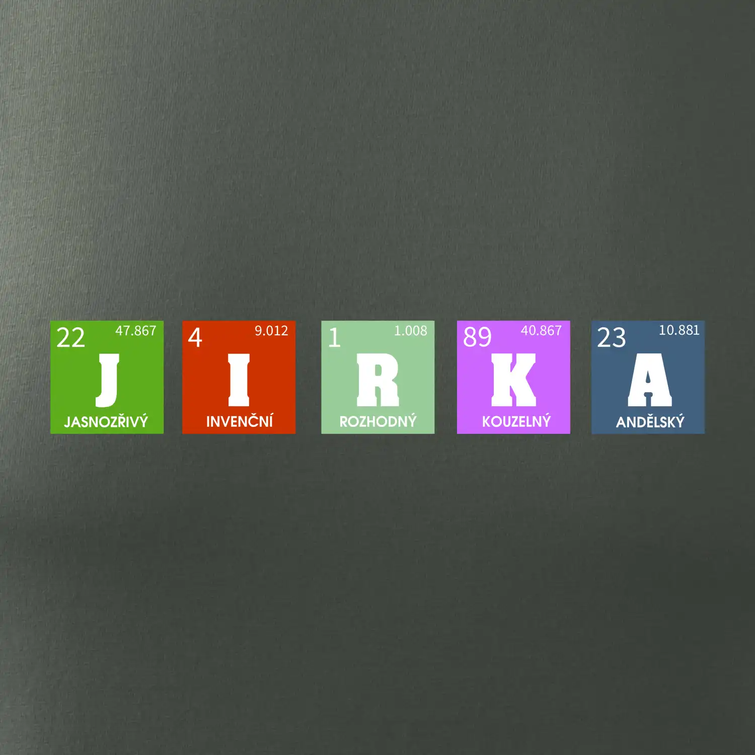 Nechte si vyrobit originální tričko s periodickou tabulkou a vaším jménem, přezdívkou, prostě jakýmkoliv nápisem, který vyjádří vlastnosti obdarovaného.