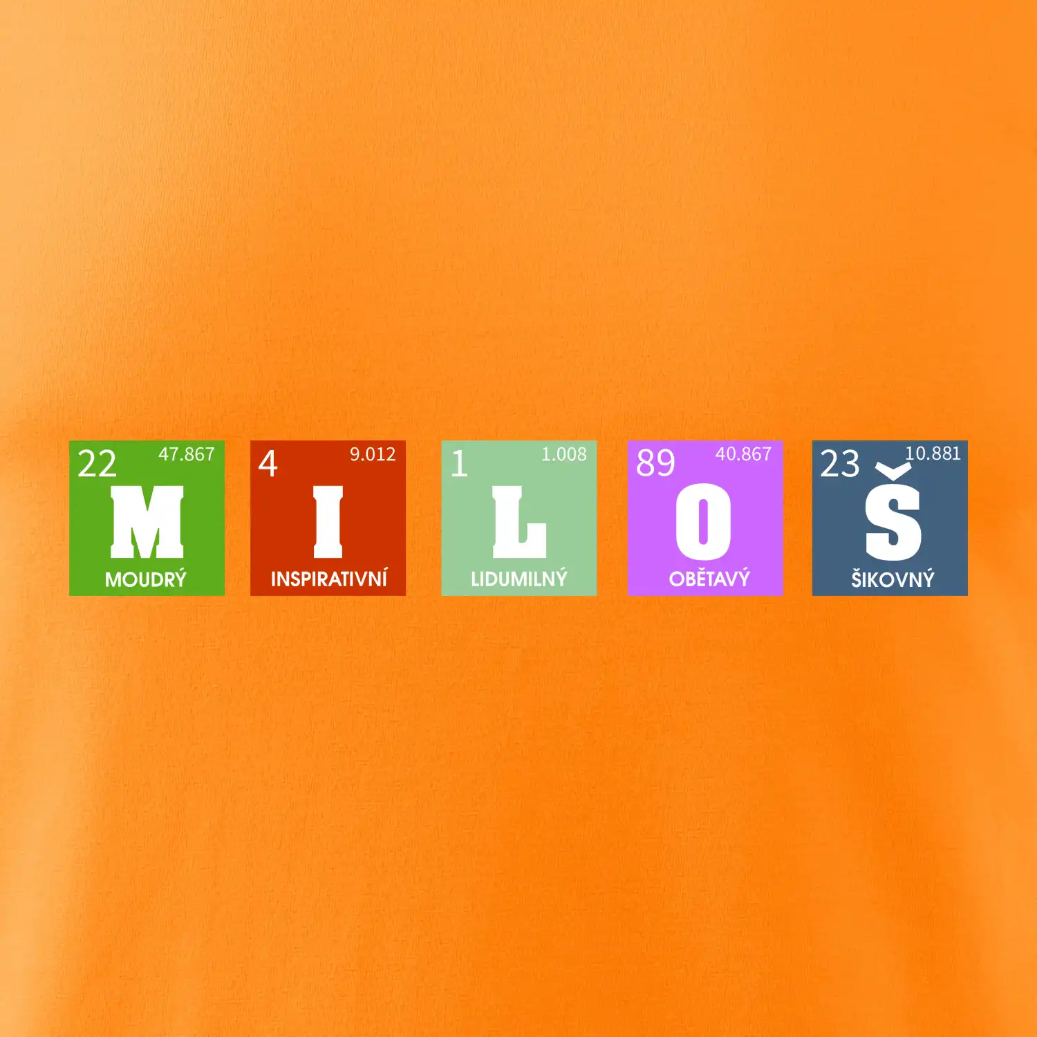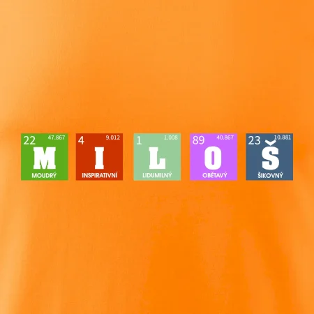 Nechte si vyrobit originální tričko s periodickou tabulkou a vaším jménem, přezdívkou, prostě jakýmkoliv nápisem, který vyjádří vlastnosti obdarovaného.