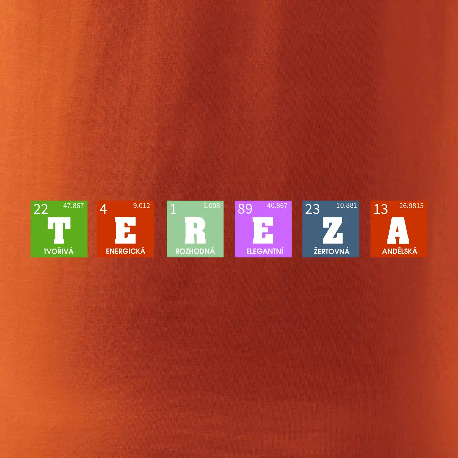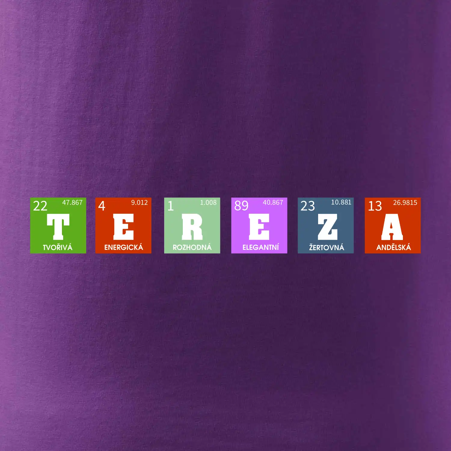 Nechte si vyrobit originální tričko s periodickou tabulkou a vaším jménem, přezdívkou, prostě jakýmkoliv nápisem, který vyjádří vlastnosti obdarovaného.