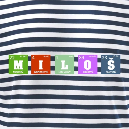 Nechte si vyrobit originální tričko s periodickou tabulkou a vaším jménem, přezdívkou, prostě jakýmkoliv nápisem, který vyjádří vlastnosti obdarovaného.