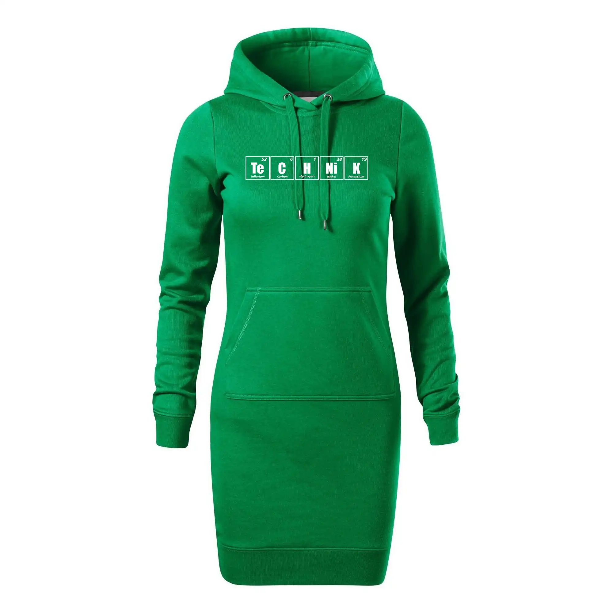 Dámské mikinové šaty MALFINI Snap 419 jsou ideální volbou pro ženy, které hledají pohodlný a stylový kousek pro volný čas nebo každodenní nošení. Lehce vypasovaný střih s bočními švy podtrhuje ženskou siluetu, zatímco kapuce s podšívkou a stahovací šňůrkou dodává ležérní vzhled. Šaty mají délku nad kolena a jsou vybaveny nakládanou kapsou ve stylu „klokanky“. Materiál je měkký a příjemný na dotek díky směsi bavlny a polyesteru s nepočesanou vnitřní stranou.