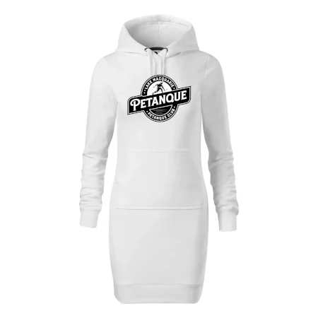 Dámské mikinové šaty MALFINI Snap 419 jsou ideální volbou pro ženy, které hledají pohodlný a stylový kousek pro volný čas nebo každodenní nošení. Lehce vypasovaný střih s bočními švy podtrhuje ženskou siluetu, zatímco kapuce s podšívkou a stahovací šňůrkou dodává ležérní vzhled. Šaty mají délku nad kolena a jsou vybaveny nakládanou kapsou ve stylu „klokanky“. Materiál je měkký a příjemný na dotek díky směsi bavlny a polyesteru s nepočesanou vnitřní stranou.