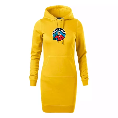 Dámské mikinové šaty MALFINI Snap 419 jsou ideální volbou pro ženy, které hledají pohodlný a stylový kousek pro volný čas nebo každodenní nošení. Lehce vypasovaný střih s bočními švy podtrhuje ženskou siluetu, zatímco kapuce s podšívkou a stahovací šňůrkou dodává ležérní vzhled. Šaty mají délku nad kolena a jsou vybaveny nakládanou kapsou ve stylu „klokanky“. Materiál je měkký a příjemný na dotek díky směsi bavlny a polyesteru s nepočesanou vnitřní stranou.