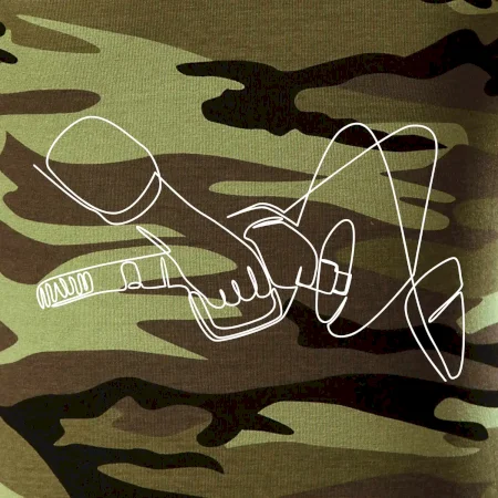 Tričko střední gramáže v barvách camouflage. Střih s bočními švy. Lem průkrčníku ze žebrového úpletu s přídavkem 5 % elastanu. Vnitřní část zadního průkrčníku začištěna páskou v barvě camouflage.