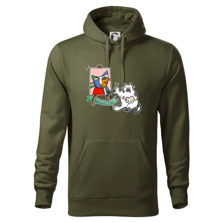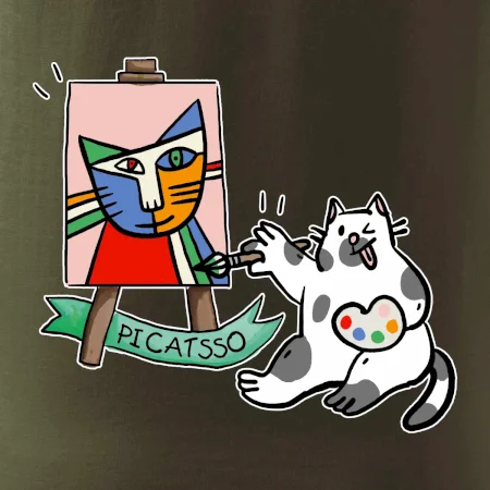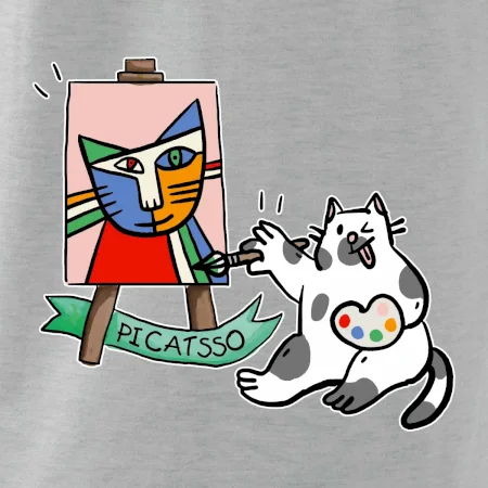 Tričko s kočkou která si věří, že je Pablo Picasso, vtipné triko s kočkou malířkou, která kreslí obraz. S trikem s kočkou nezkazíš žádnou srandu.