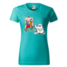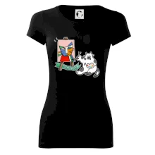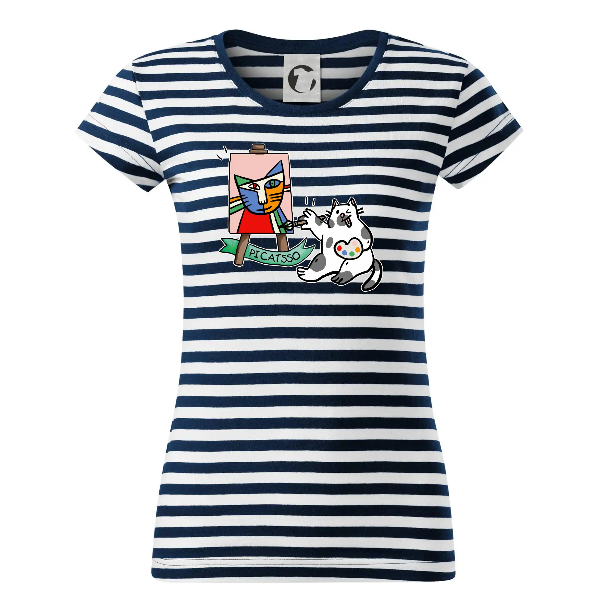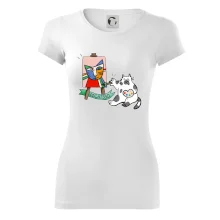 Tričko s kočkou která si věří, že je Pablo Picasso, vtipné triko s kočkou malířkou, která kreslí obraz. S trikem s kočkou nezkazíš žádnou srandu.