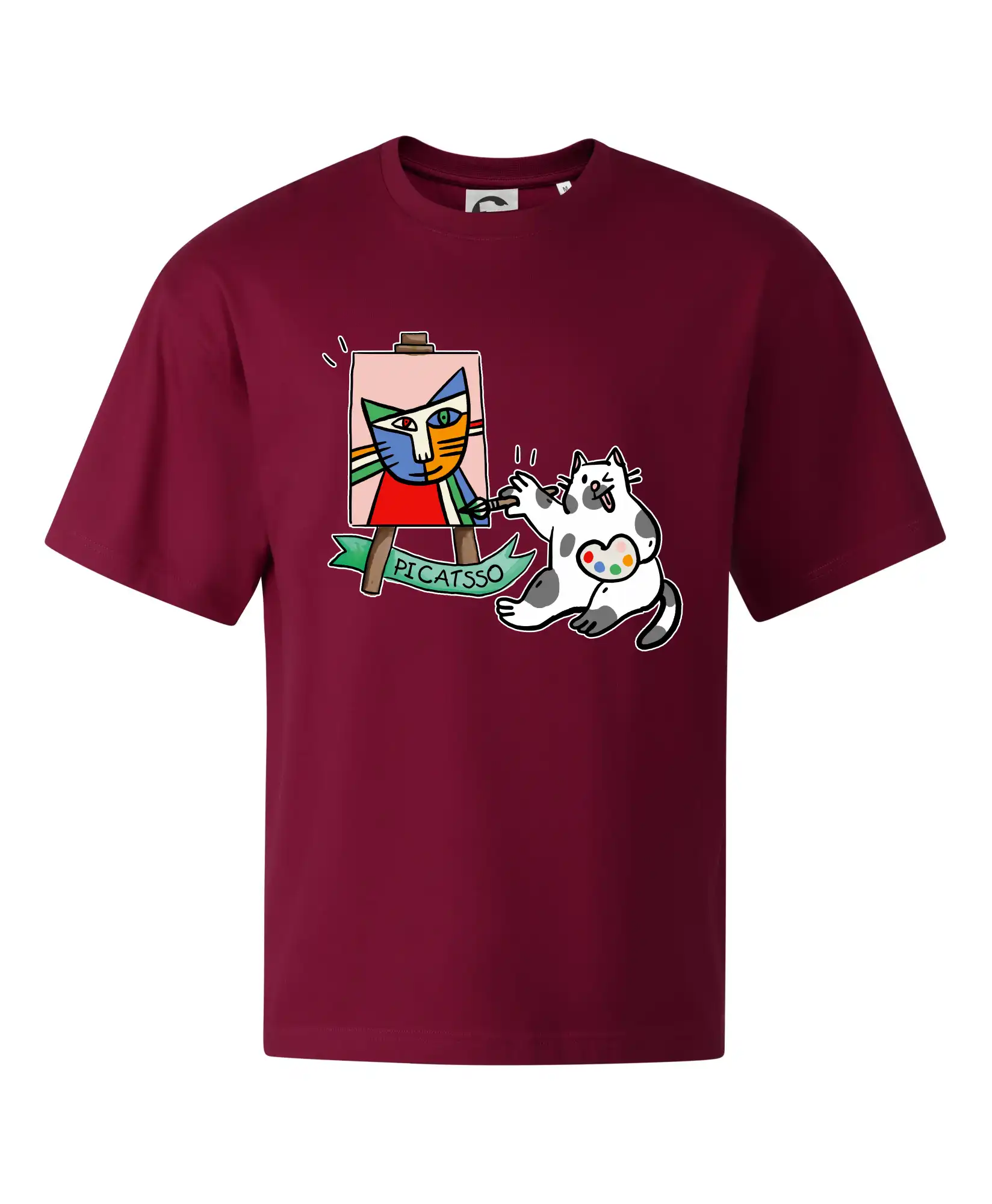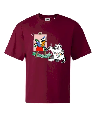 Tričko s kočkou která si věří, že je Pablo Picasso, vtipné triko s kočkou malířkou, která kreslí obraz. S trikem s kočkou nezkazíš žádnou srandu.