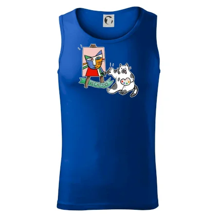 Tričko s kočkou která si věří, že je Pablo Picasso, vtipné triko s kočkou malířkou, která kreslí obraz. S trikem s kočkou nezkazíš žádnou srandu.
