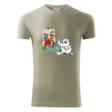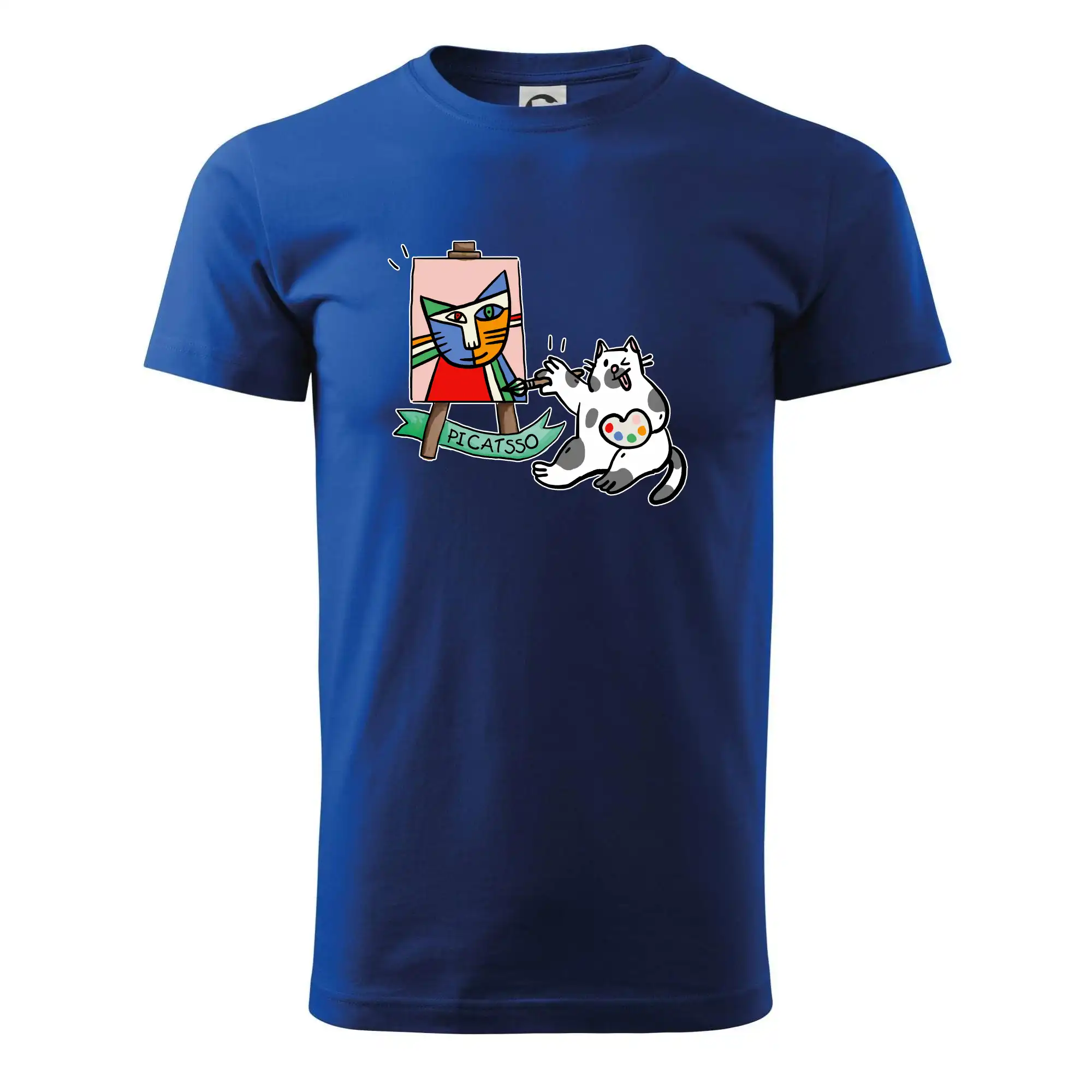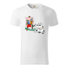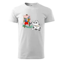 Tričko s kočkou která si věří, že je Pablo Picasso, vtipné triko s kočkou malířkou, která kreslí obraz. S trikem s kočkou nezkazíš žádnou srandu.