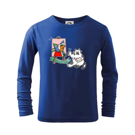 Tričko s kočkou která si věří, že je Pablo Picasso, vtipné triko s kočkou malířkou, která kreslí obraz. S trikem s kočkou nezkazíš žádnou srandu.