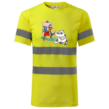 Tričko s kočkou která si věří, že je Pablo Picasso, vtipné triko s kočkou malířkou, která kreslí obraz. S trikem s kočkou nezkazíš žádnou srandu.