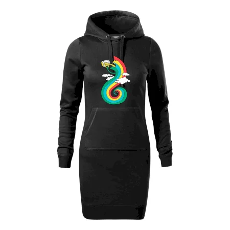Dámské mikinové šaty MALFINI Snap 419 jsou ideální volbou pro ženy, které hledají pohodlný a stylový kousek pro volný čas nebo každodenní nošení. Lehce vypasovaný střih s bočními švy podtrhuje ženskou siluetu, zatímco kapuce s podšívkou a stahovací šňůrkou dodává ležérní vzhled.