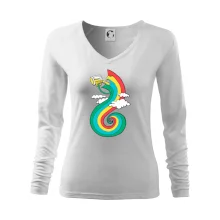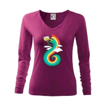Tolerantnější vypasování dámského střihu, který je vhodný pro všechny typy postavy, ideální délka rukávů a konzervativní výstřih zakončený žebrováním, které skvěle drží tvar.
