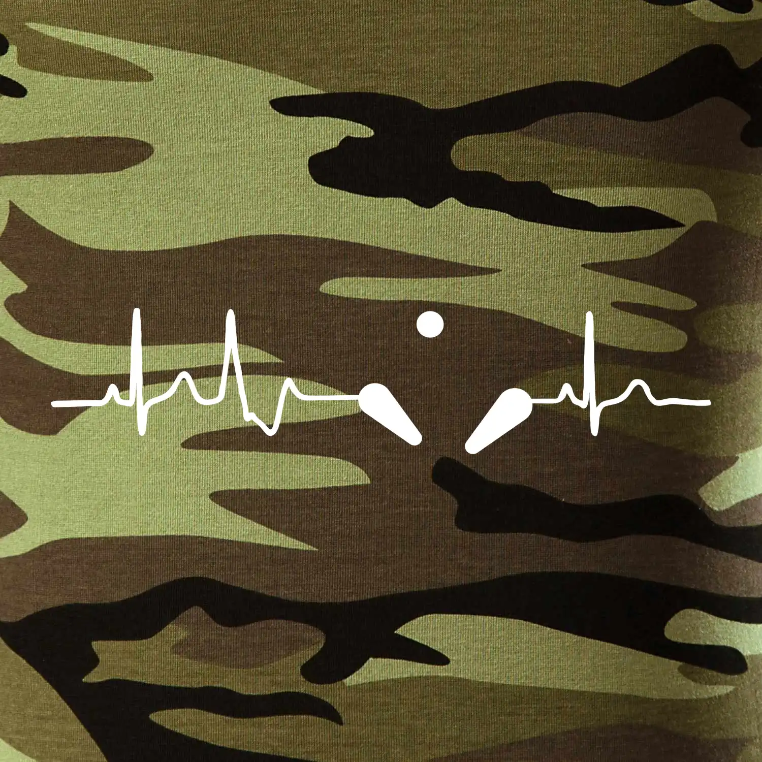 Tričko střední gramáže v barvách camouflage. Střih s bočními švy. Lem průkrčníku ze žebrového úpletu s přídavkem 5 % elastanu. Vnitřní část zadního průkrčníku začištěna páskou v barvě camouflage.