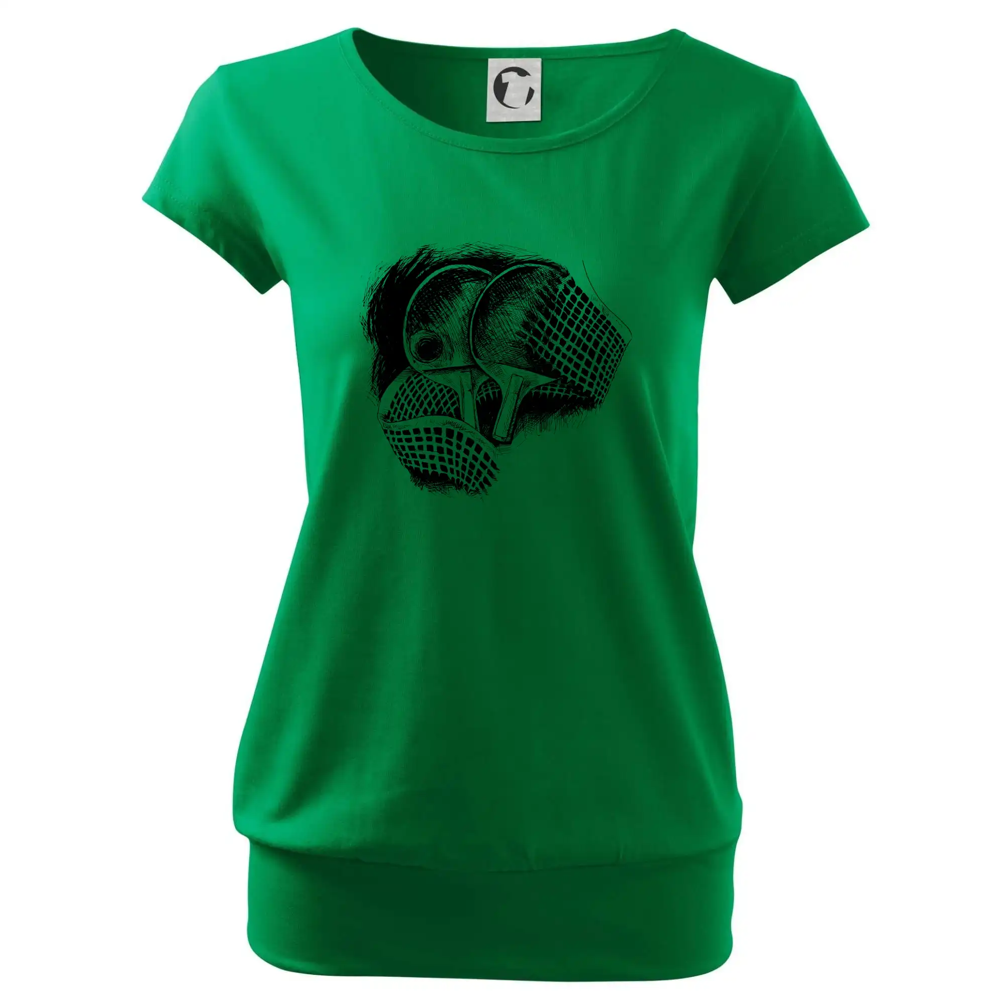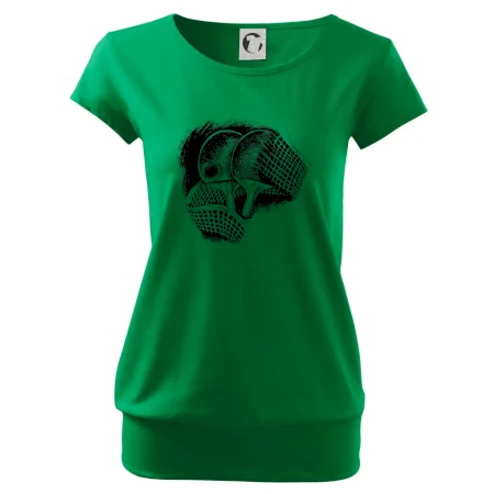 Trendové dámské triko s velmi krátkým rukávem, volnějšího střihu, v dolním kraji všité do širokého lemu. Kulatý průkrčník s úzkým lemem ze shodného materiálu.