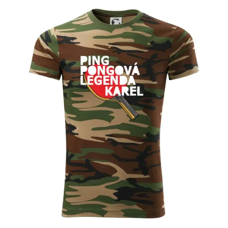 Tričko střední gramáže v barvách camouflage. Střih s bočními švy. Lem průkrčníku ze žebrového úpletu s přídavkem 5 % elastanu. Vnitřní část zadního průkrčníku začištěna páskou v barvě camouflage.