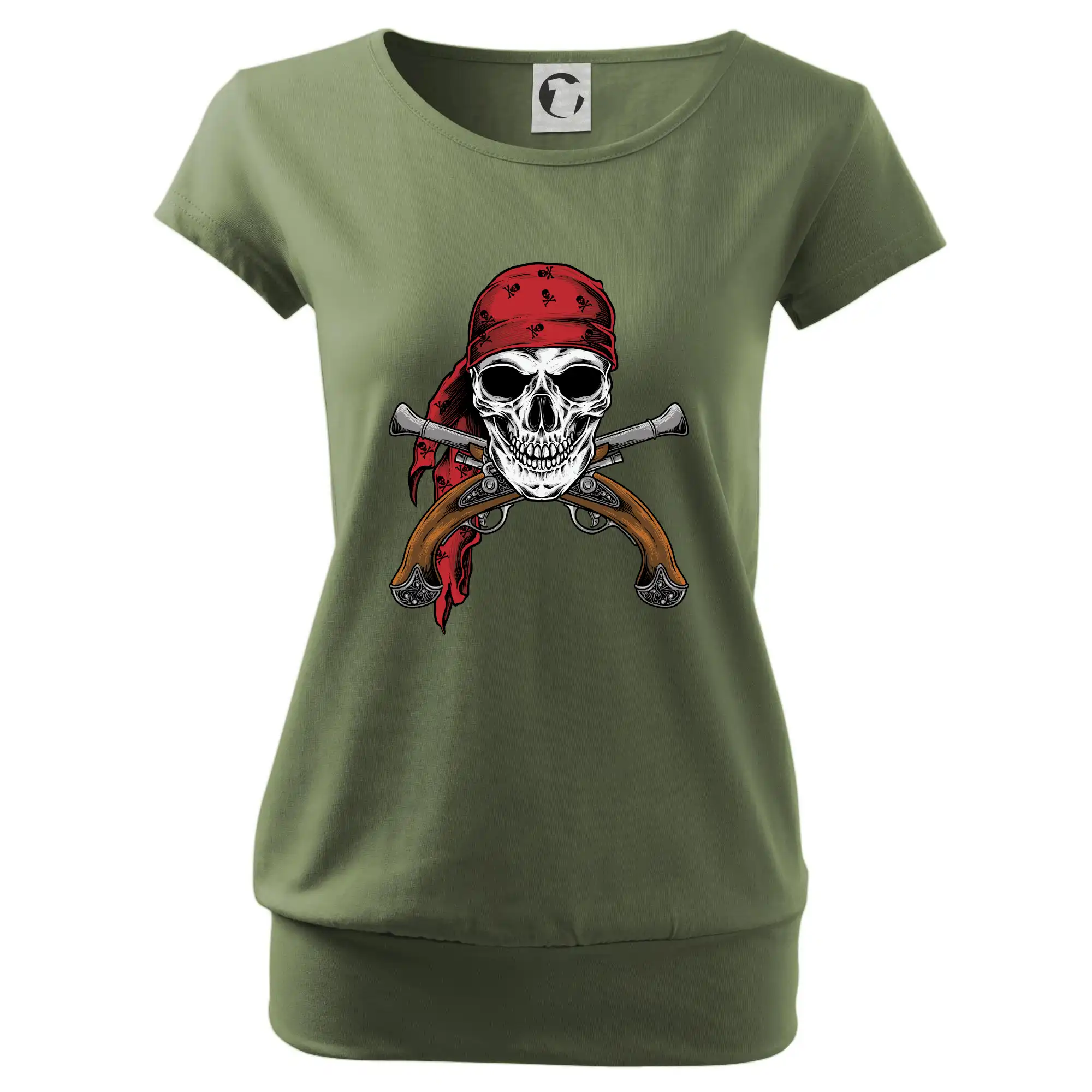 Trendové dámské triko s velmi krátkým rukávem, volnějšího střihu, v dolním kraji všité do širokého lemu. Kulatý průkrčník s úzkým lemem ze shodného materiálu.