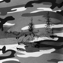 Tričko střední gramáže v barvách camouflage. Střih s bočními švy. Lem průkrčníku ze žebrového úpletu s přídavkem 5 % elastanu. Vnitřní část zadního průkrčníku začištěna páskou v barvě camouflage.
