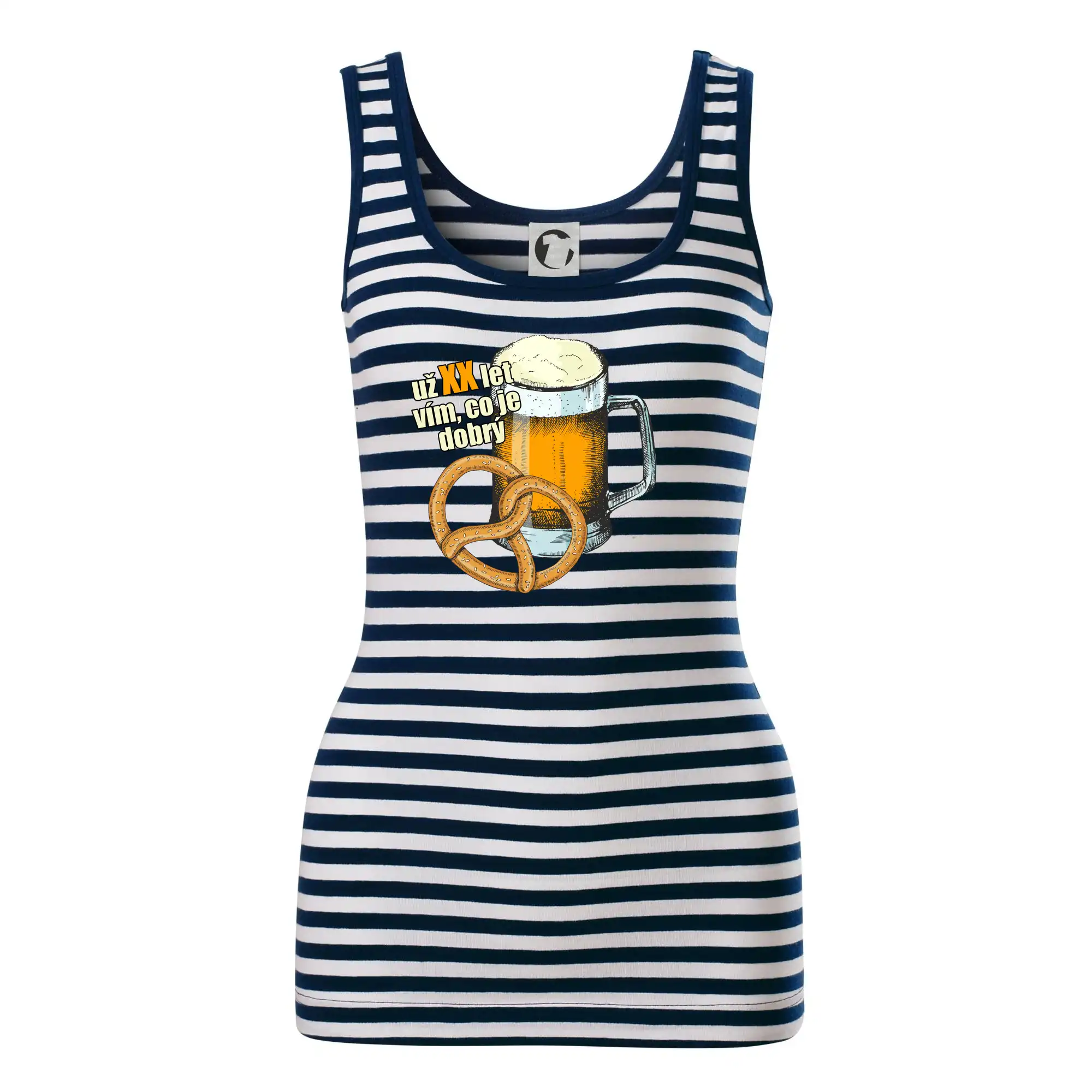 Dámské tílko MALFINI Sailor Top 806 přináší ikonický námořnický vzhled s bílo-modrými pruhy, ideální pro letní dny, výlety nebo ležérní outfity.