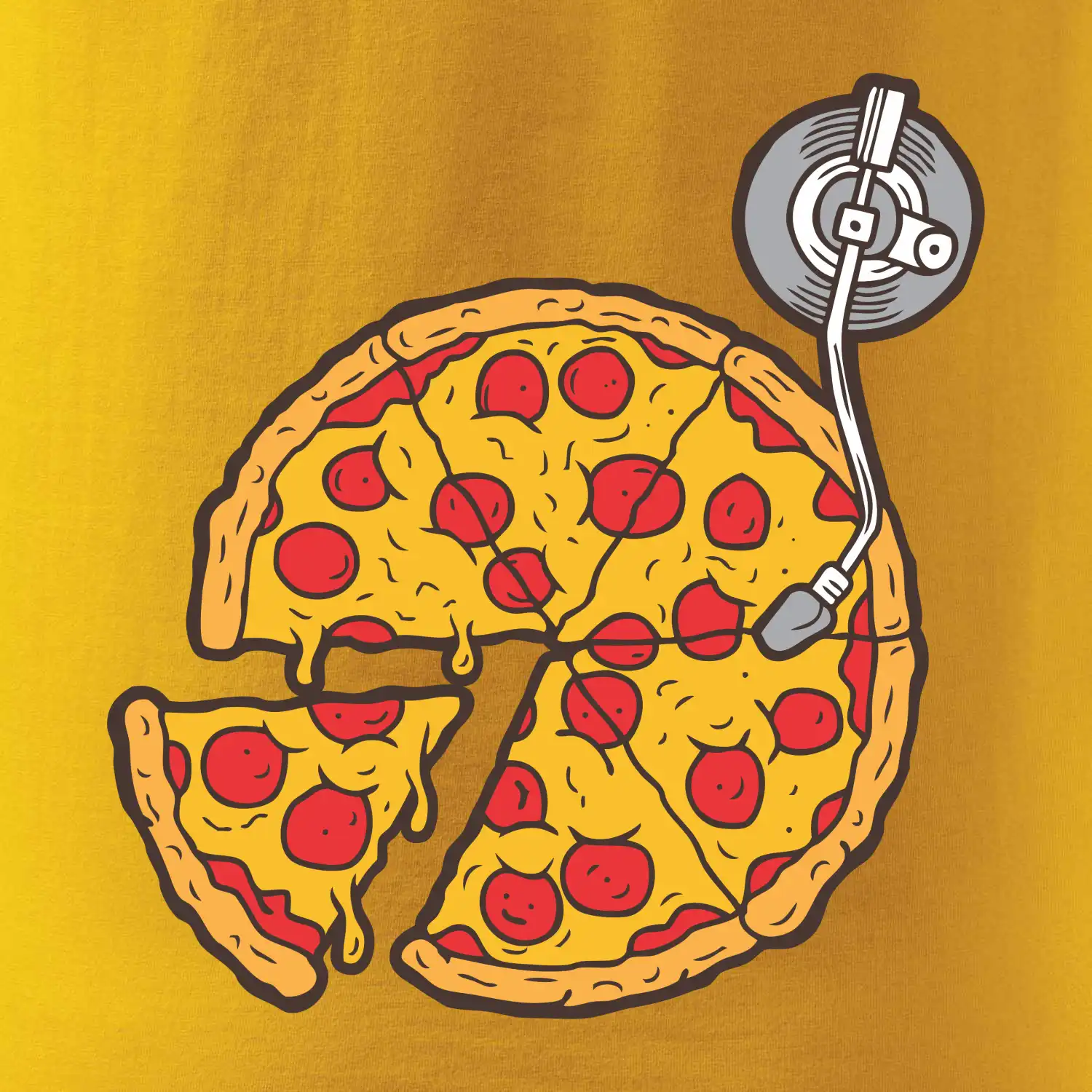 Triko pro dýdžeje, který miluje pizzu a hudba je jeho život. Na triku je totiž pizza místo desky na mixážním pultu. Dárek pro dýdžeje tě potěší pokud jsi DJ celým srdcem. Gramofonová deska zmizela, místo ní obsadila gramofon pizza.