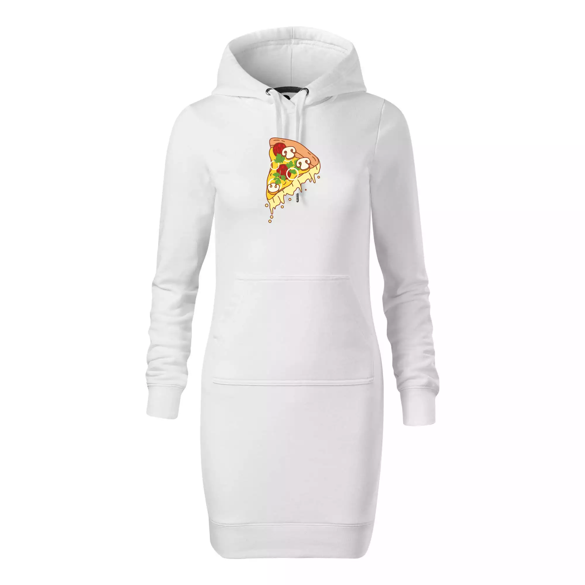 Dámské mikinové šaty MALFINI Snap 419 jsou ideální volbou pro ženy, které hledají pohodlný a stylový kousek pro volný čas nebo každodenní nošení. Lehce vypasovaný střih s bočními švy podtrhuje ženskou siluetu, zatímco kapuce s podšívkou a stahovací šňůrkou dodává ležérní vzhled.