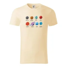 Pánské tričko s krátkým rukávem vyšší gramáže. Módní, přiléhavý střih s bočními švy. Úzký lem průkrčníku ze žebrového úpletu s přídavkem 5 % elastanu. Vnitřní část zadního průkrčníku začištěna páskou. Zpevněný ramenní šev.