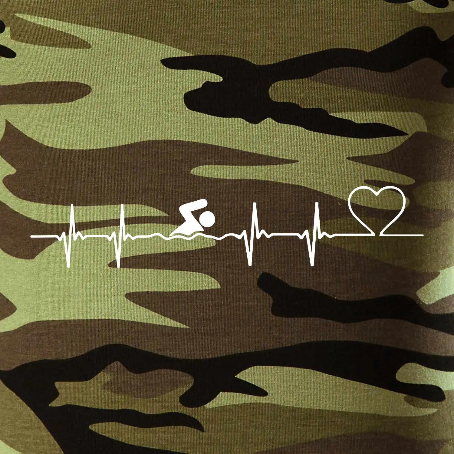 Tričko střední gramáže v barvách camouflage. Střih s bočními švy. Lem průkrčníku ze žebrového úpletu s přídavkem 5 % elastanu. Vnitřní část zadního průkrčníku začištěna páskou v barvě camouflage.