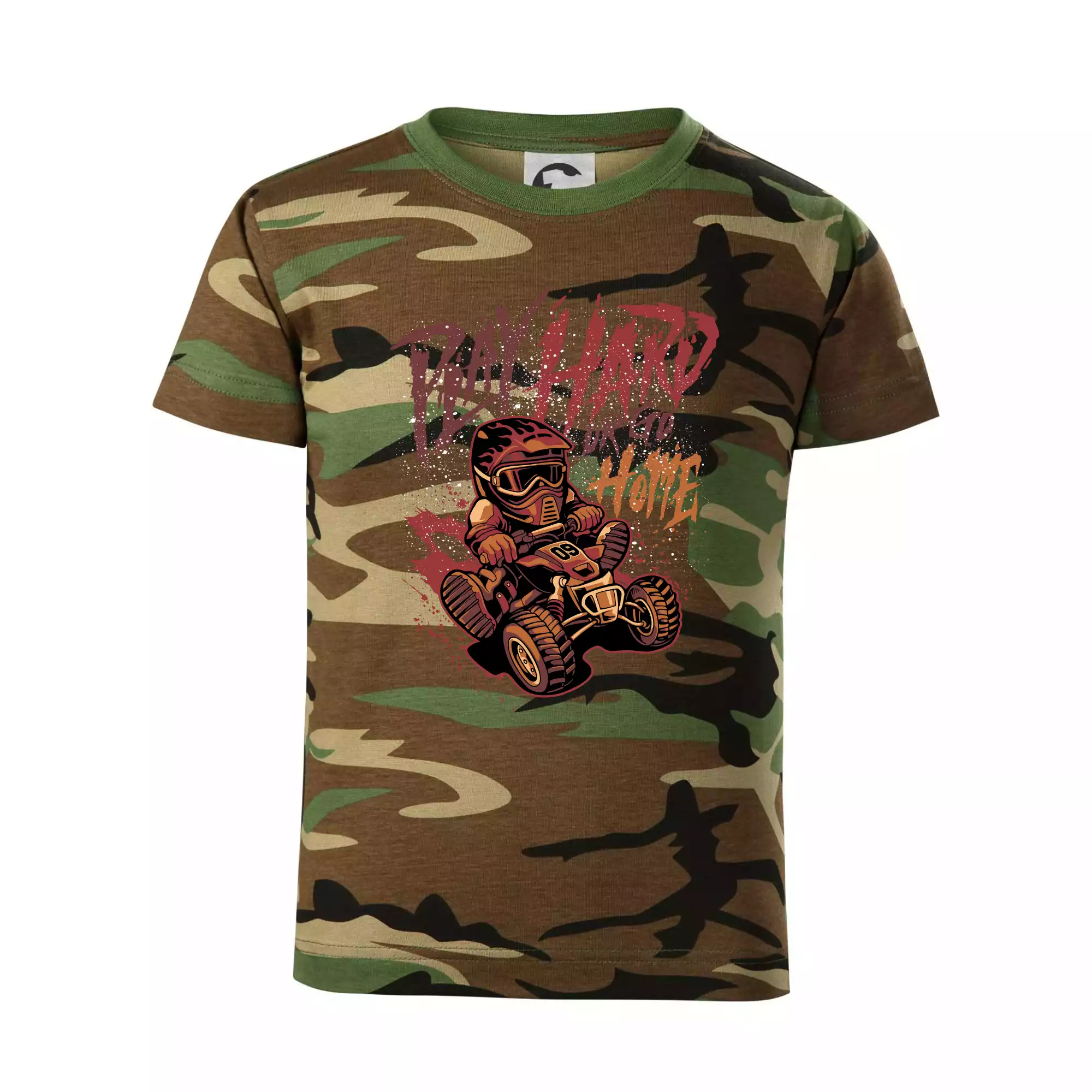 Triko pro motoristu, na kterém je kreslená off road čtyřkolka s nápisem "Play Hard or Go Home". Triko se čtyřkolkou by doma měl mít každý správný off-road motorista. Triko se čtyřkolkou je vhodný dárek pro motoristu, pro kterého je jízda na čtyřkolce ten pravý adrenalin.