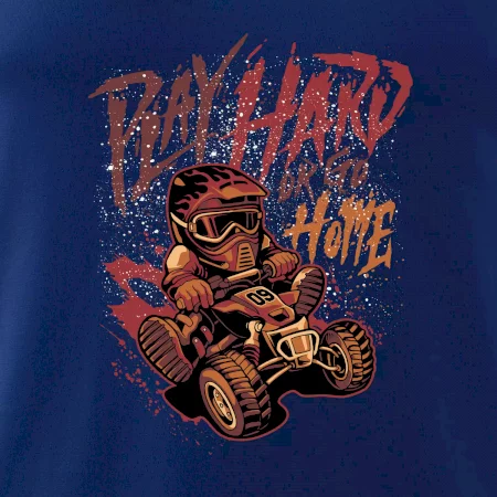 Triko pro motoristu, na kterém je kreslená off road čtyřkolka s nápisem "Play Hard or Go Home". Triko se čtyřkolkou by doma měl mít každý správný off-road motorista. Triko se čtyřkolkou je vhodný dárek pro motoristu, pro kterého je jízda na čtyřkolce ten pravý adrenalin.
