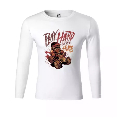 Triko pro motoristu, na kterém je kreslená off road čtyřkolka s nápisem "Play Hard or Go Home". Triko se čtyřkolkou by doma měl mít každý správný off-road motorista. Triko se čtyřkolkou je vhodný dárek pro motoristu, pro kterého je jízda na čtyřkolce ten pravý adrenalin.