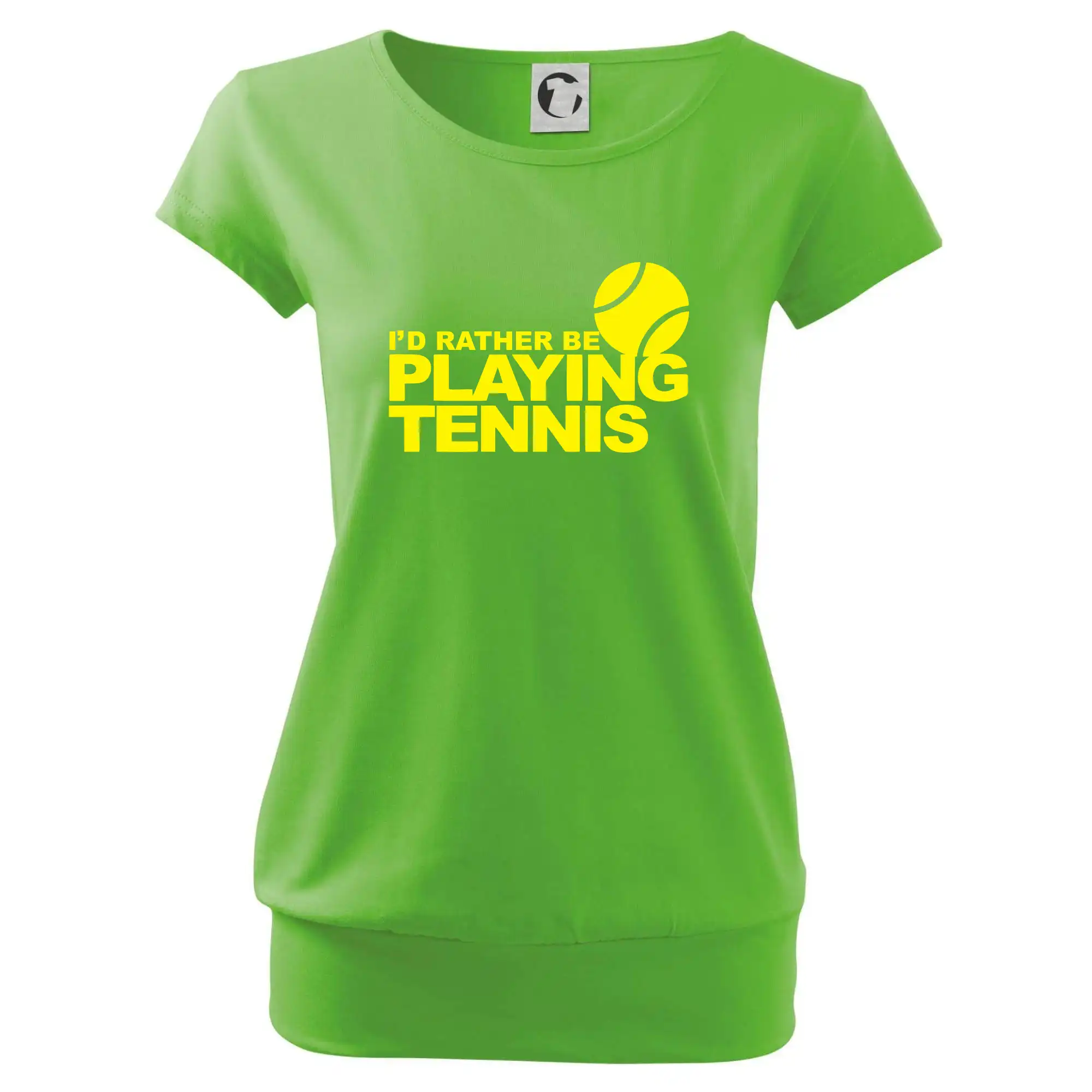 Trendové dámské triko s velmi krátkým rukávem, volnějšího střihu, v dolním kraji všité do širokého lemu. Kulatý průkrčník s úzkým lemem ze shodného materiálu.