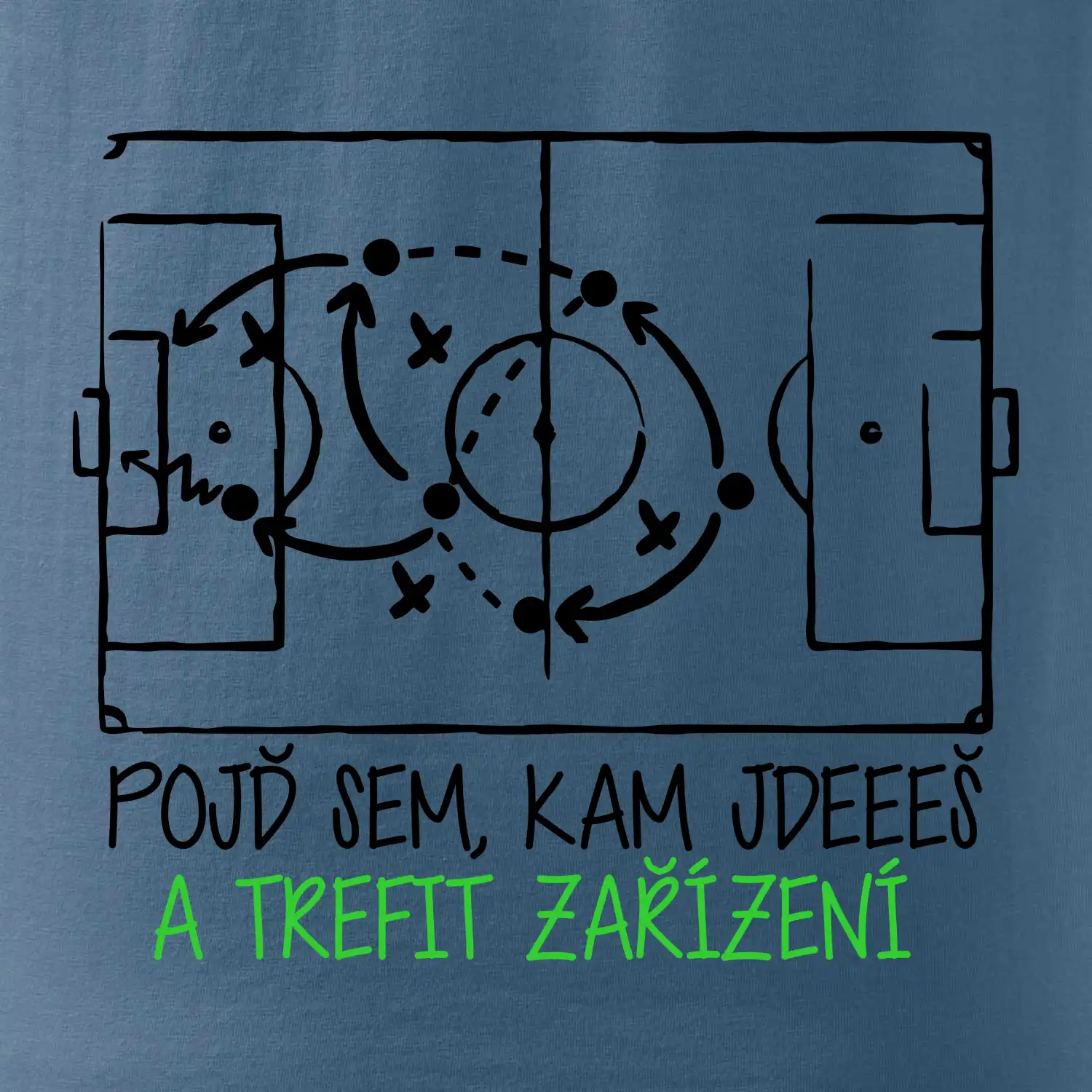 Pojď sem, kam jdeš, základní fotbalová hláška i s taktikou na daný zápas na triku.