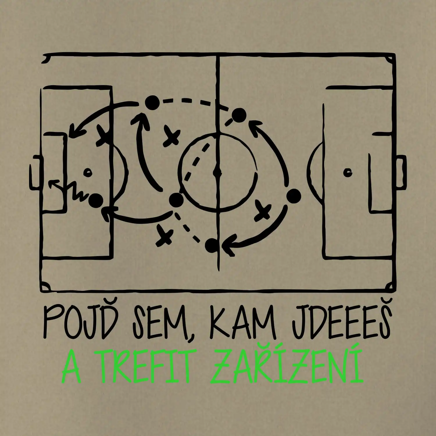 Pojď sem, kam jdeš, základní fotbalová hláška i s taktikou na daný zápas na triku.