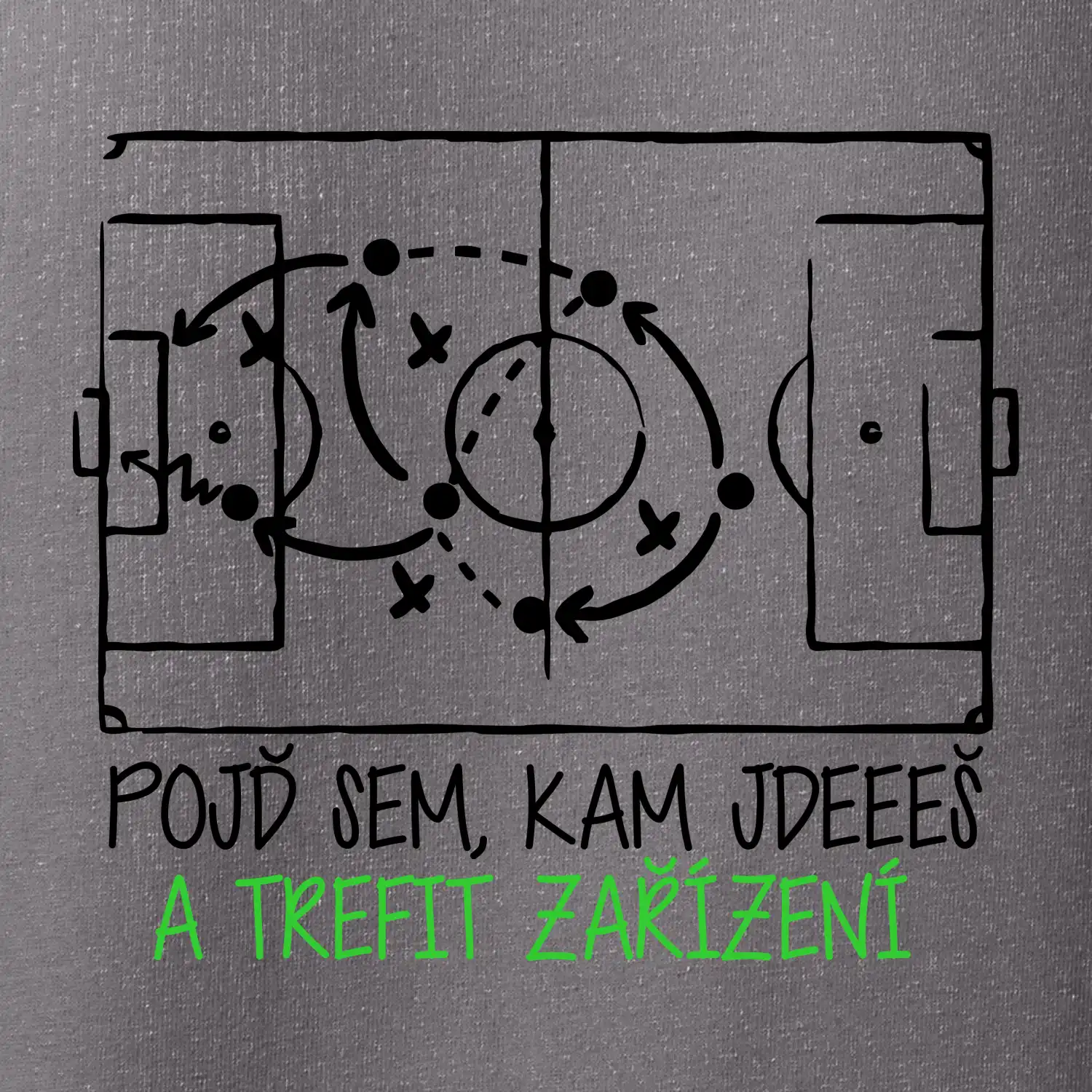Pojď sem, kam jdeš, základní fotbalová hláška i s taktikou na daný zápas na triku.