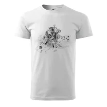 Pánské tričko s krátkým rukávem vyšší gramáže. Módní, přiléhavý střih s bočními švy. Úzký lem průkrčníku ze žebrového úpletu s přídavkem 5 % elastanu. Vnitřní část zadního průkrčníku začištěna páskou. Zpevněný ramenní šev.