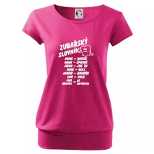Trendové dámské triko s velmi krátkým rukávem, volnějšího střihu, v dolním kraji všité do širokého lemu. Kulatý průkrčník s úzkým lemem ze shodného materiálu.