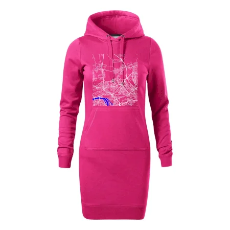 Dámské mikinové šaty MALFINI Snap 419 jsou ideální volbou pro ženy, které hledají pohodlný a stylový kousek pro volný čas nebo každodenní nošení. Lehce vypasovaný střih s bočními švy podtrhuje ženskou siluetu, zatímco kapuce s podšívkou a stahovací šňůrkou dodává ležérní vzhled.