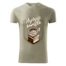 Pánské tričko s krátkým rukávem vyšší gramáže. Módní, přiléhavý střih s bočními švy. Úzký lem průkrčníku ze žebrového úpletu s přídavkem 5 % elastanu. Vnitřní část zadního průkrčníku začištěna páskou. Zpevněný ramenní šev.