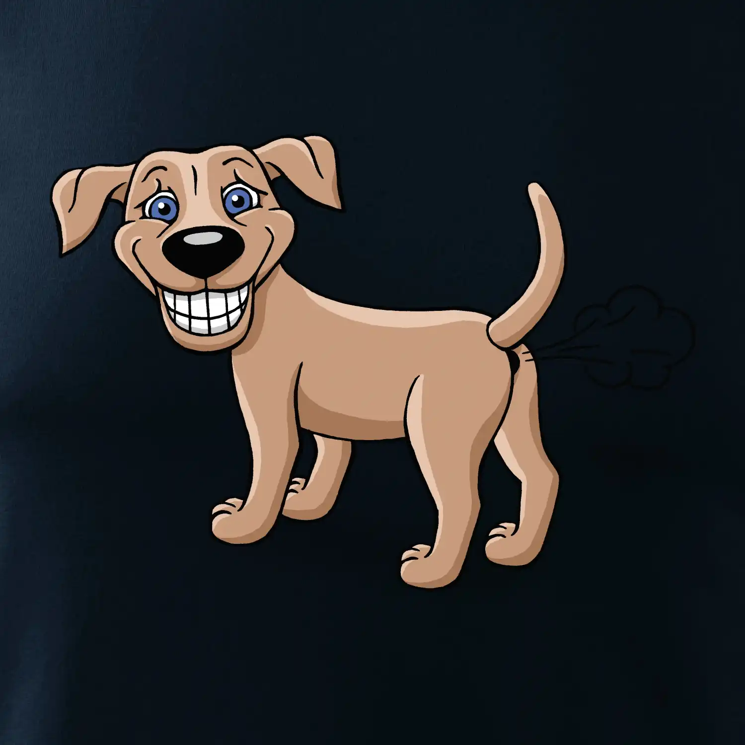 S vtipnými tričky od MyShirt.cz zazáříte. Vybírejte z mnoha originálních potisků, jako je například tento kreslený prdící pes.