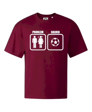Vtipné triko pro fotbalistu! Máš doma nějaký problém? Tak vezmi míč a běž si zahrát fotbal. Triko pro fotbalistu jako vhodný dárek pro každého, kdo má rád fotbal.