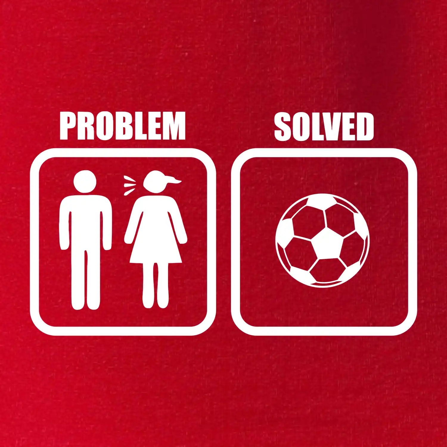 Vtipné triko pro fotbalistu! Máš doma nějaký problém? Tak vezmi míč a běž si zahrát fotbal. Triko pro fotbalistu jako vhodný dárek pro každého, kdo má rád fotbal.