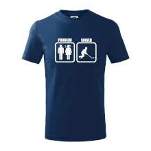 Vtipné triko pro hokejistu! Máš doma nějaký problém? Tak vezmi brusle a běž si na zimák zahrát hokej. Triko pro hokejistu jako vhodný dárek pro každého, kdo má rád hokej.