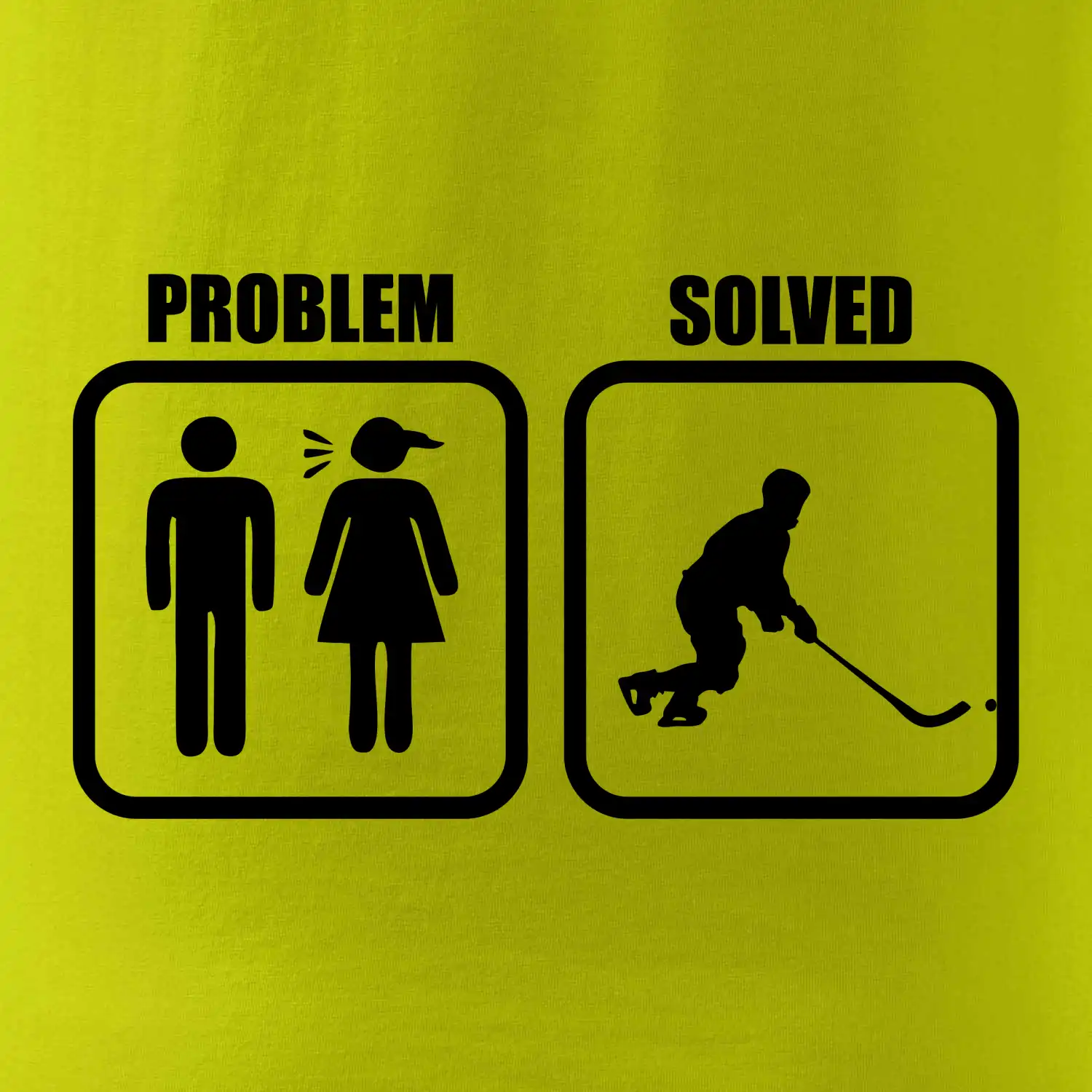 Vtipné triko pro hokejistu! Máš doma nějaký problém? Tak vezmi brusle a běž si na zimák zahrát hokej. Triko pro hokejistu jako vhodný dárek pro každého, kdo má rád hokej.