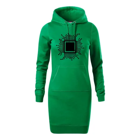 Dámské mikinové šaty MALFINI Snap 419 jsou ideální volbou pro ženy, které hledají pohodlný a stylový kousek pro volný čas nebo každodenní nošení. Lehce vypasovaný střih s bočními švy podtrhuje ženskou siluetu, zatímco kapuce s podšívkou a stahovací šňůrkou dodává ležérní vzhled.