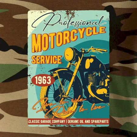 Tričko střední gramáže v barvách camouflage. Střih s bočními švy. Lem průkrčníku ze žebrového úpletu s přídavkem 5 % elastanu. Vnitřní část zadního průkrčníku začištěna páskou v barvě camouflage.
